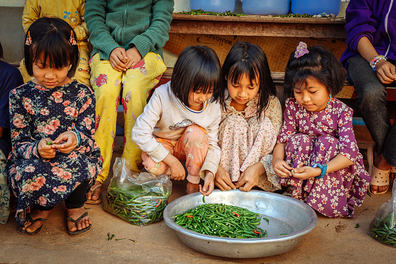 SchoolIn Myanmar moeten de kinderen net als in Nederland naar school. Maar in de afgelegen gebieden in de bergen zijn vaak helemaal geen scholen. Ook is er vaak geen geld om de leerkrachten te betalen. De militaire regering heeft al die jaren niet veel geld uitgegeven aan het onderwijs en soms werden universiteiten jarenlang gesloten. Door de burgeroorlog is het nu nog moeilijker voor de kinderen om naar school te gaan. Veel kinderen moesten vluchten en leven nu in kampen.