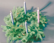 krans wordt gemaakt van groene takken. Er staan vier kaarsen op, meestal