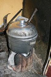 voedsel. Tafels of stoelen hebben we niet. Eten doen we op de grond.