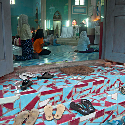 trekt men in de christelijke kerken de schoenen uit. Men wil niet met de